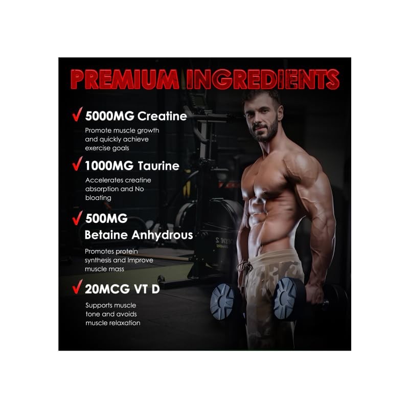 - Ignite Your Workouts: Taurine + Betaine Anhydrous aids the rapid absorption of creatine power in your body. Creatina helps achieve lean, "bloat-free" muscle, enhances muscle size, strength, and mass naturally, and boosts high-intensity exercise capacity.