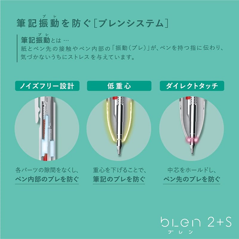 - [Blen 2+S] Same size as a single color. Slim multifunctional pen with sharp