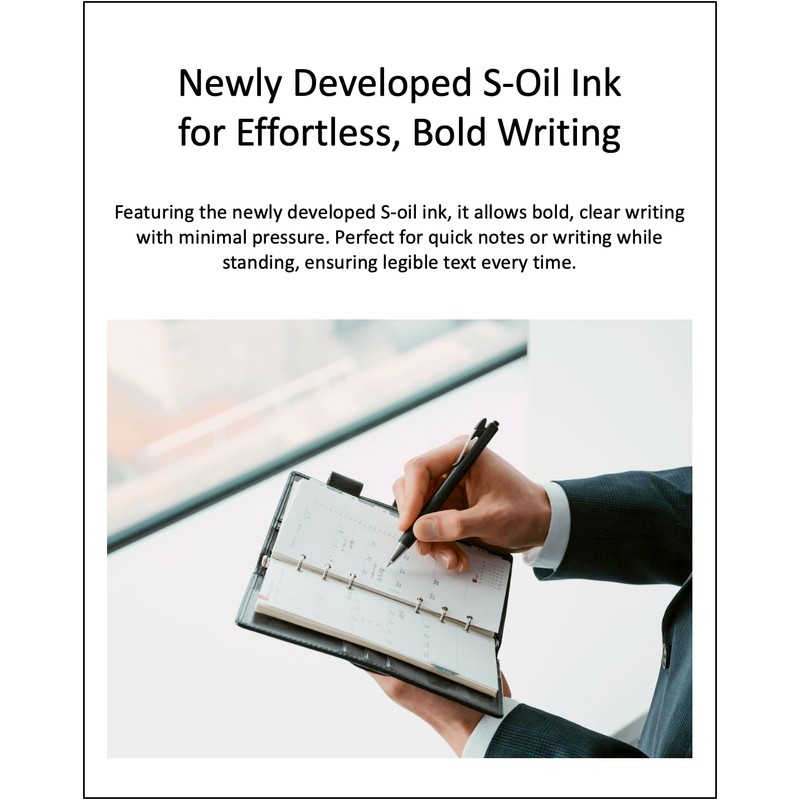 - Newly Developed S-Oil Ink for Effortless, Bold Writing: Featuring the newly developed S-oil ink, it allows bold, clear writing with minimal pressure. Perfect for quick notes or writing while standing, ensuring legible text every time.