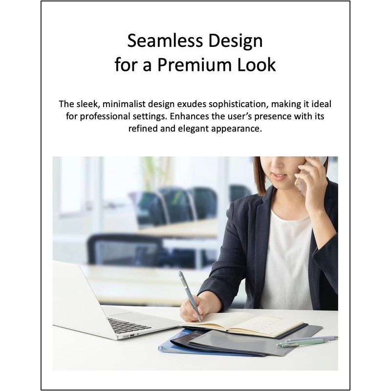 - Seamless Design for a Premium Look: The sleek, minimalist design exudes sophistication, making it ideal for professional settings. Enhances the user’s presence with its refined and elegant appearance.