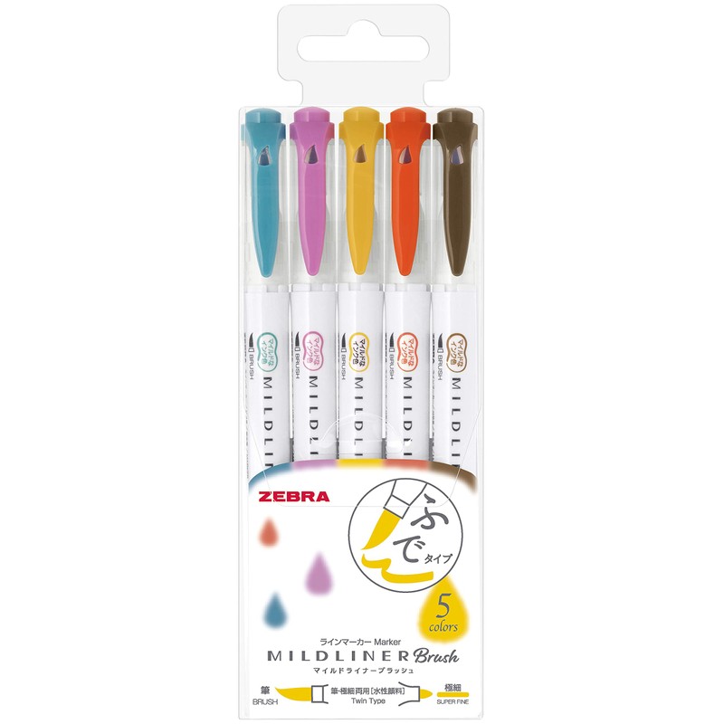 Zebra Highlighter Mildliner Brush Refined Color 5 Colors Set, WFT8-5C-RC