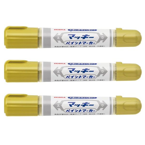 Zebra Permanent Pens, Mackie Paint Markers, Gold, Set of 3 YYT20-AZ-GO3