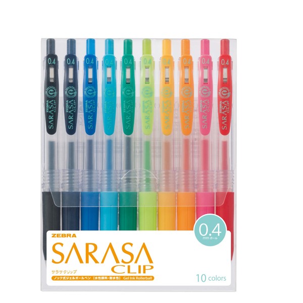 Zebra Sarasa Clip 0.4, 10 Color Set (JJS15-10CA)