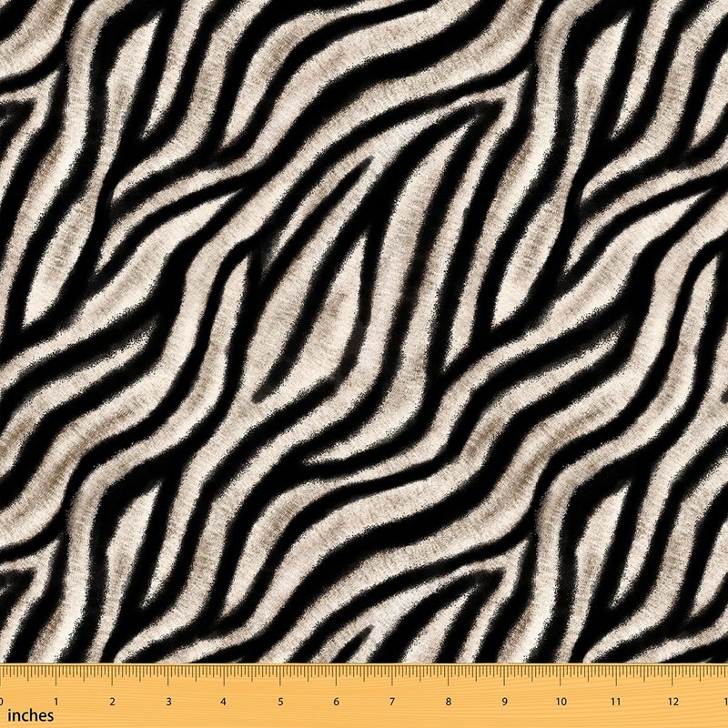 Zebra Skin Pattern Fabric by The Yard for Chairs African Wild Animal Upholstery Fabric for Arts DIY Black and White Stripes Decorative Waterproof Outdoor Fabric(No Real Fur),1 Yard