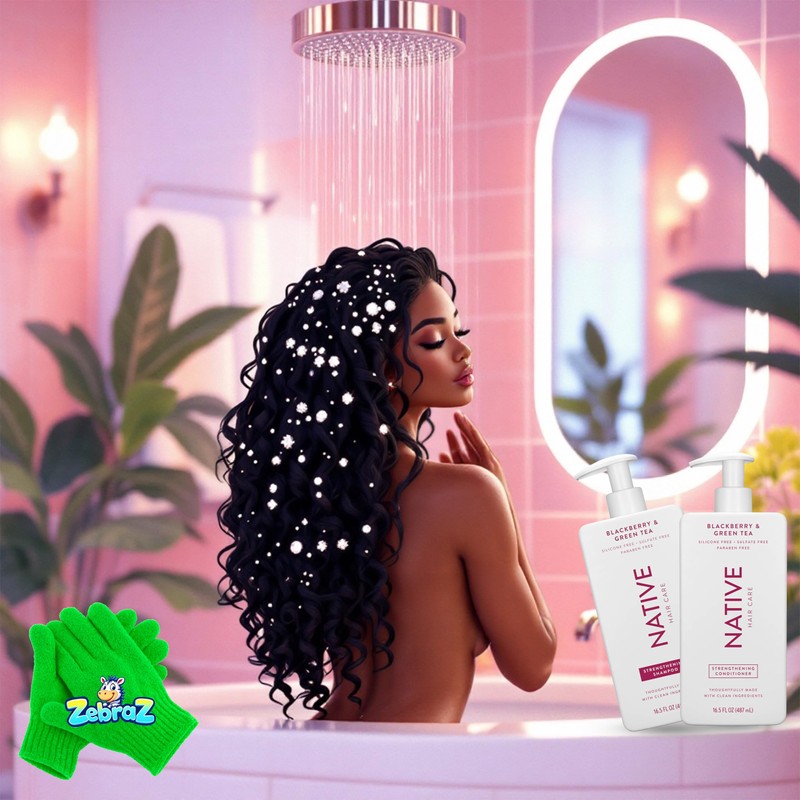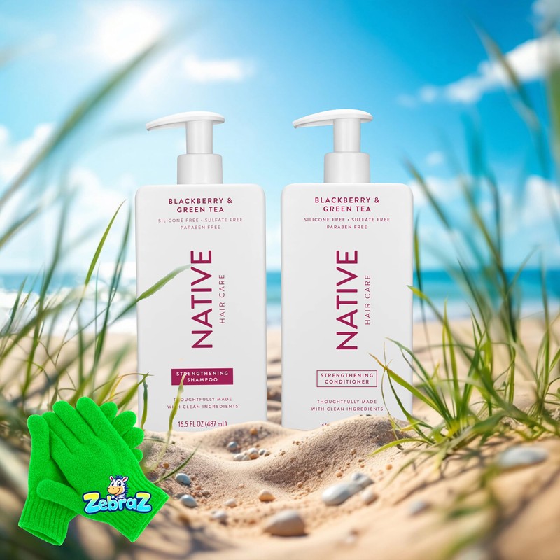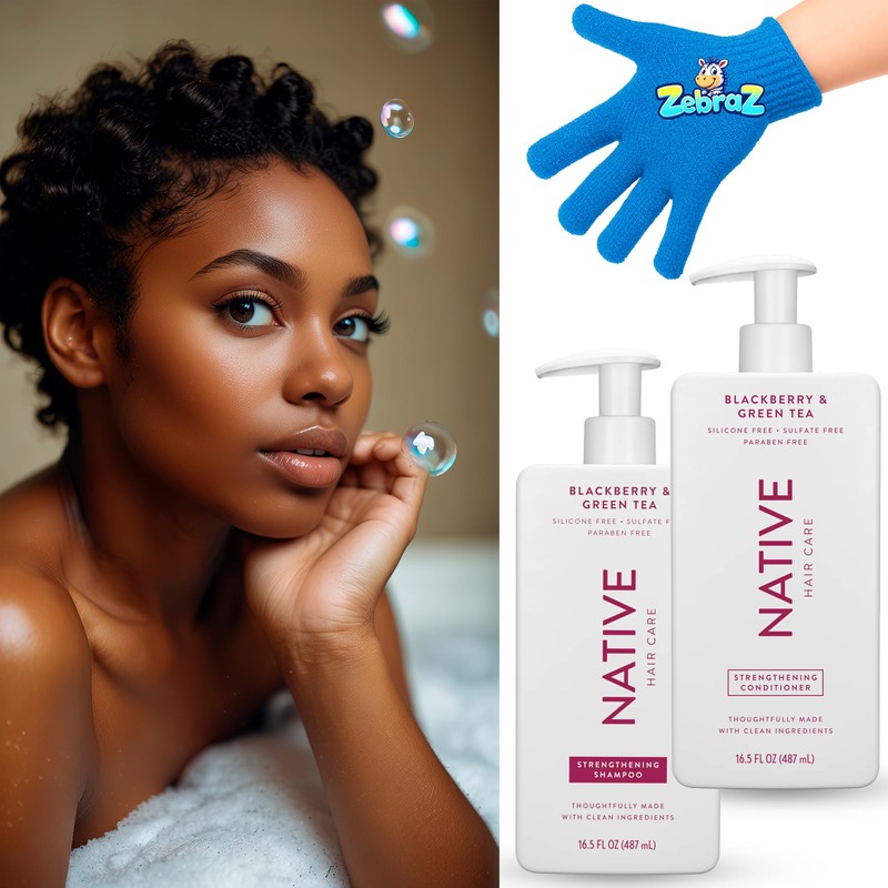 ZebraZ Shampoo and Conditioner Set – Blackberry & Green Tea – 16.5 fl oz Each – Includes 1 Pair of Exfoliating Gloves Color May Vary – Daily Hair Care – Paraben-Free & Gentle Formula - 1 Kit