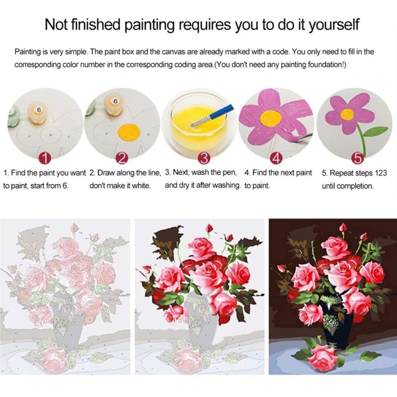 - Flexible Paint - High-quality Safe Acrylic Paints. It is environmentally friendly and tasteless, with strong coverage. It can cover the original patterns on the canvas. This paint-by-number kit is for all ages.