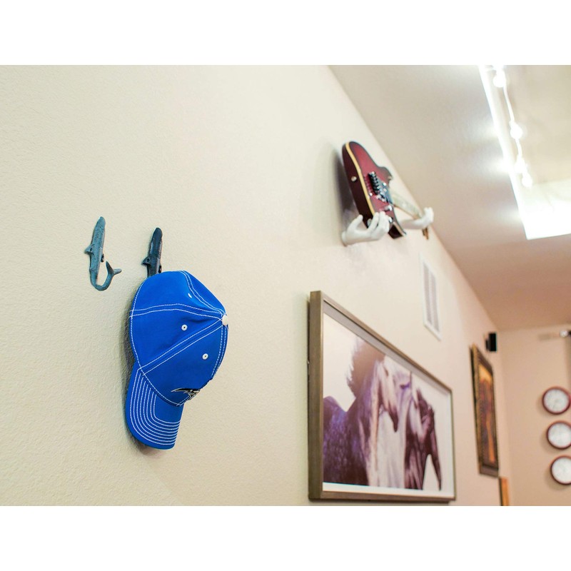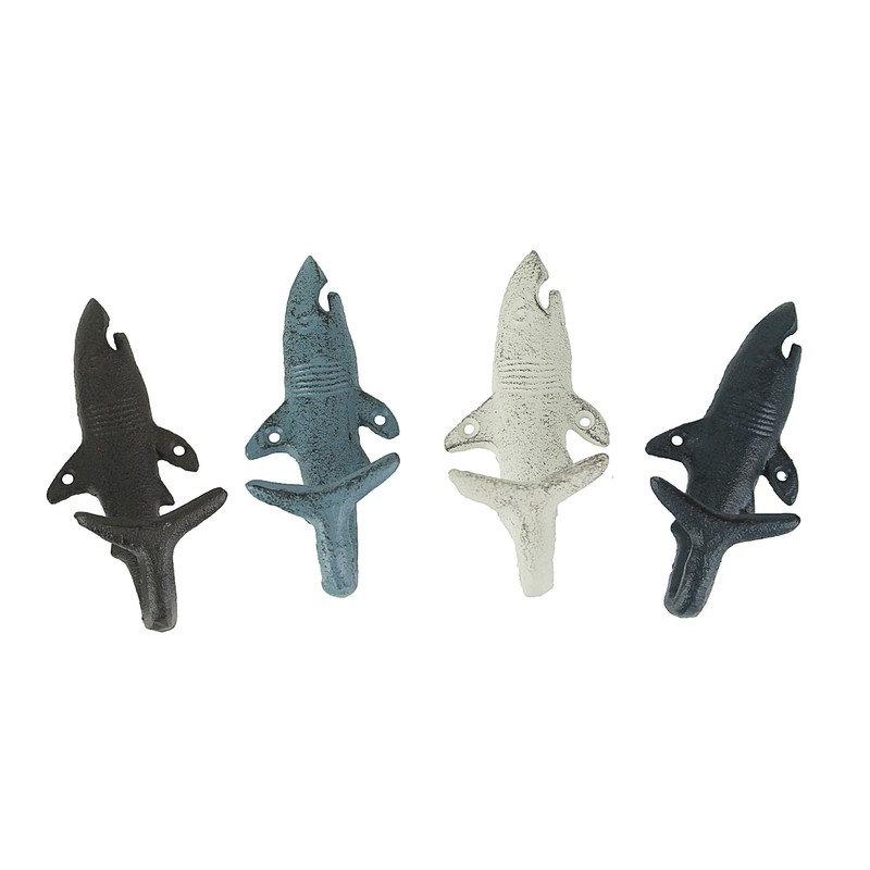 Zeckos Set of 4 Rustic Nautical Cast Iron Shark Wall Hooks