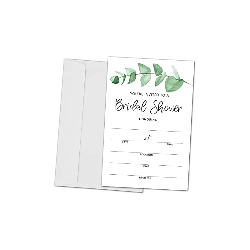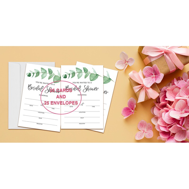 ZEDEV Bridal Shower Invitation Cards with Envelopes - Greenery Invites for Wedding, Engagement, Showers, Parties and Receptions - 25 Cards and 25 Envelopes(A02)
