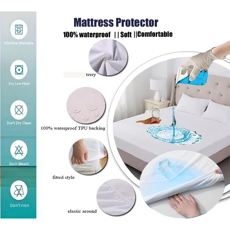 Zee value point Fitted 100% Waterproof Mattress Protector - Soft, Breathable Cotton - Durable & Machine Washable - White (Queen)