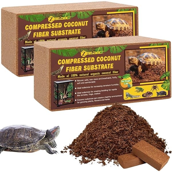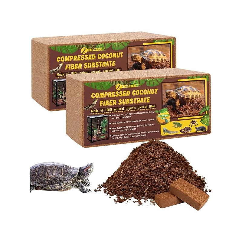 ZeeDix 2Pcs Compressed Coconut Fiber Substrate, 100% Organic Coco Coir Fiber Brick Substrate Fluffy Bearded Dragon Tortoise Snake Terrarium Substrate Loose Natural Husk Terrarium Bedding for Reptiles