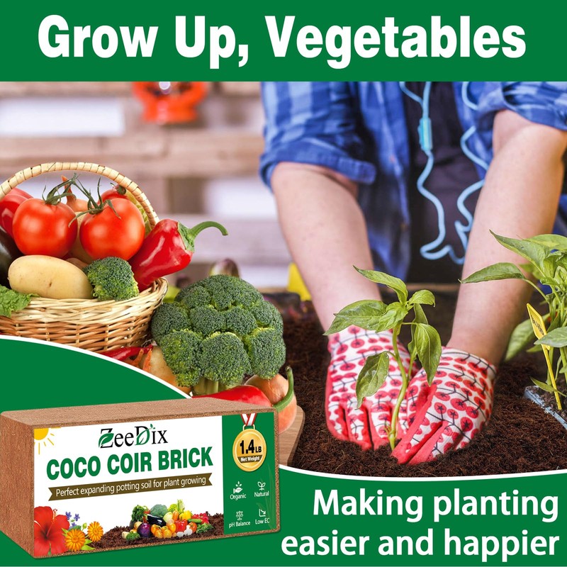 - Coco Coir Brick: Suitable for all gardening applications, potted plants, container gardens, elevated beds, indoor plants, flowers, vegetables, herbs, can provide them with sufficient oxygen and moisture, a good environment is helpful to grow.