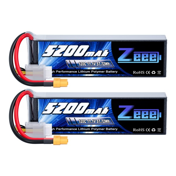 - 【What You Get】- 2 Pack of Zeee 11.1V 120C 5200mAh lipo battery with XT60 plug. Any product problems, please Contact US: 1. Enter into "Your Orders" to click "Contact Seller" option; 2. Click "Ask a question" on our storefront. We will get back to you within 24 hours.
