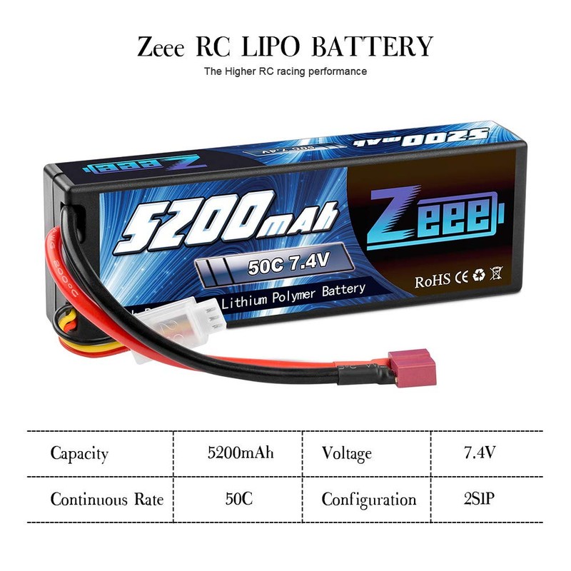 - 【What you get】- 2 Pack of Zeee 7.4V 50C 5200mAh 2S Lipo Battery Hard case with Dean-Style T Connector. After-sales Service: Every Zeee Product has 30 Days Money Back Guarantee & 12 Months Warranty. Please contact us immediately if you have any problems, we will reply you within 24 hours.