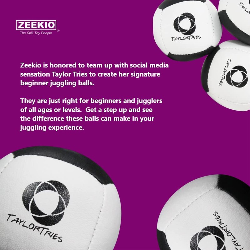 Zeekio Taylor Tries Signature Beginner Juggling Ball Set - 6 Panel Ball - 110 Grams 62mm