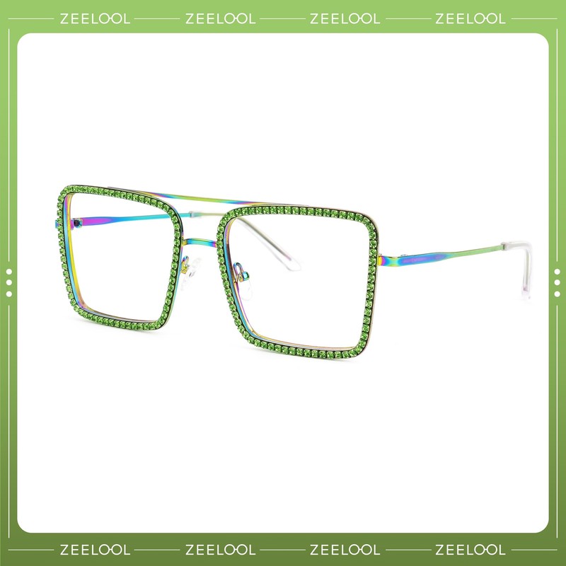 - The classic aviator design, enhanced with diamond-encrusted chains, reflects a blend of modern luxury and timeless heritage. This combination adds a touch of sophistication and sparkle, elevating the eyeglasses frames to a high-end and fashionable accessory.