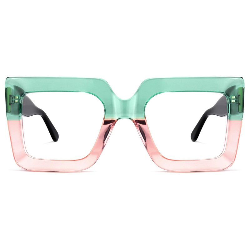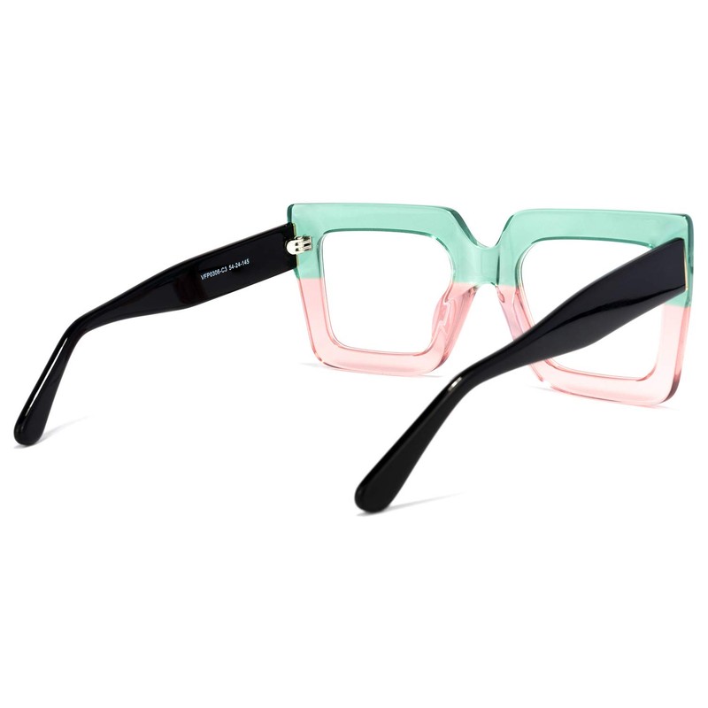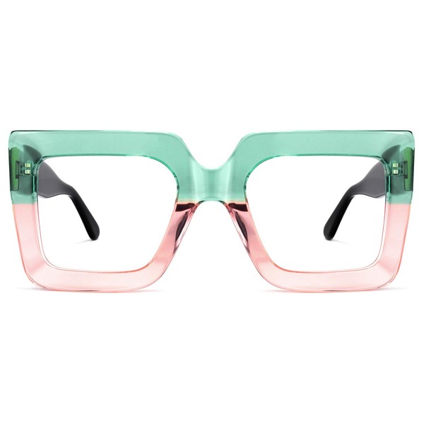 Zeelool Readers Thick Oversized Square Reading Eyeglasses for Women with Standard Anti-Reflective Coating Brandon VFP0306 (Green-Pink, 0.00)