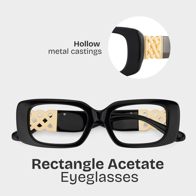 - Retro Rectangle Glasses: 90s retro style design,chic small square frame with side temples with metal hollow out, fits most face shapes,add retro charm to your outfit.
