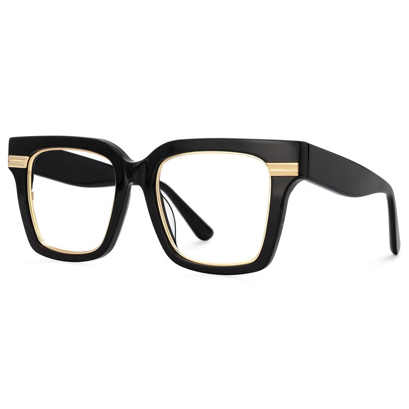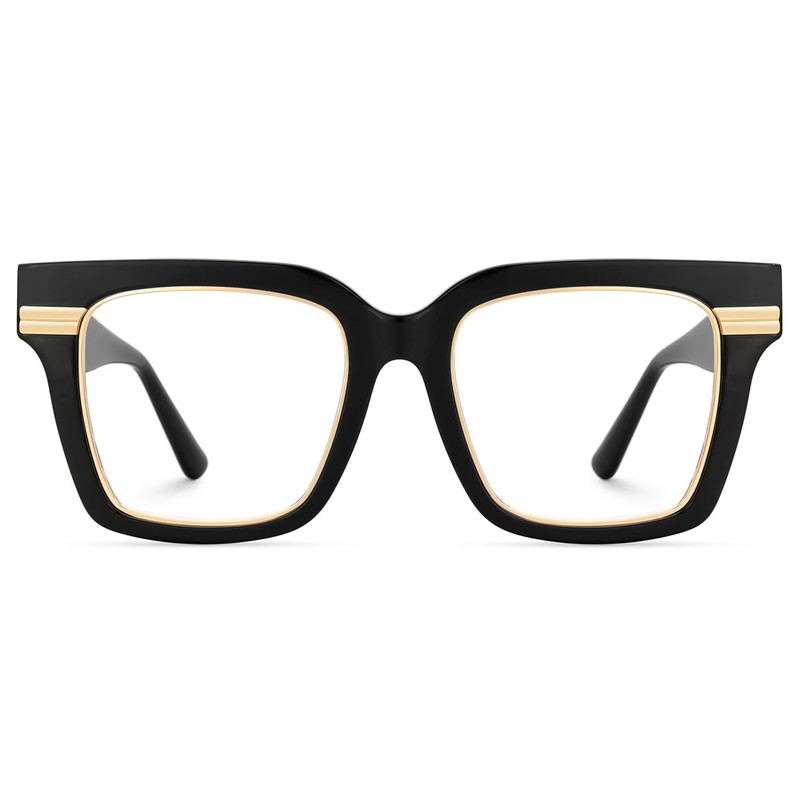 - 【Design Concept】 This eyeglass features a striking combination of glossy black acetate and luxurious 18K golden metal accent. The bold contrast between the sleek black and the radiant golden metal adds a touch of glamour and sophistication, perfect for the womam who exudes confidence and elegance.