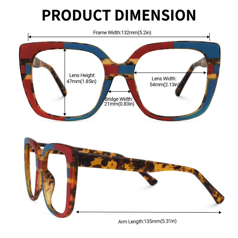 - [PRODUCT DIMENSION] Lens Width: 54mm (2.13") | Lens Height: 47mm (1.85") | Bridge Width: 21mm (0.83") | Frame Width: 132mm (5.2") | Arm Length: 135mm (5.31").