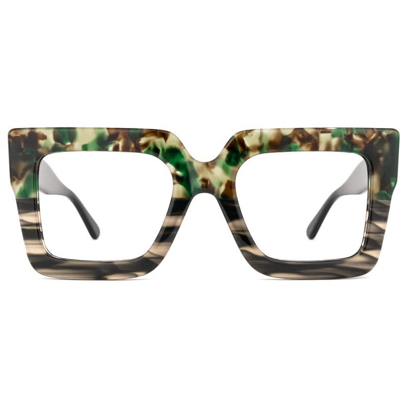Zeelool Stylish Thick Oversized Square Blue Light Blocking Glasses for Women 100% UV400 Protection Brandon VFP0306, Vfp0306-17 Green-floral, Oversized