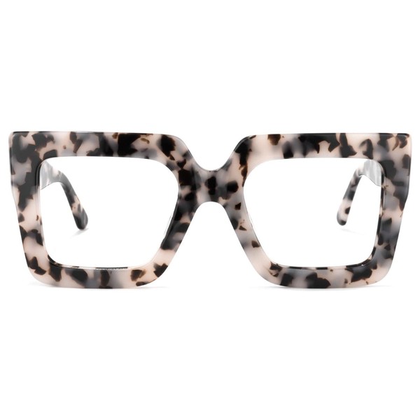 Zeelool Stylish Thick Oversized Square Reading Glasses for Women Brandon VFP03-04, Pink-floral, Oversized