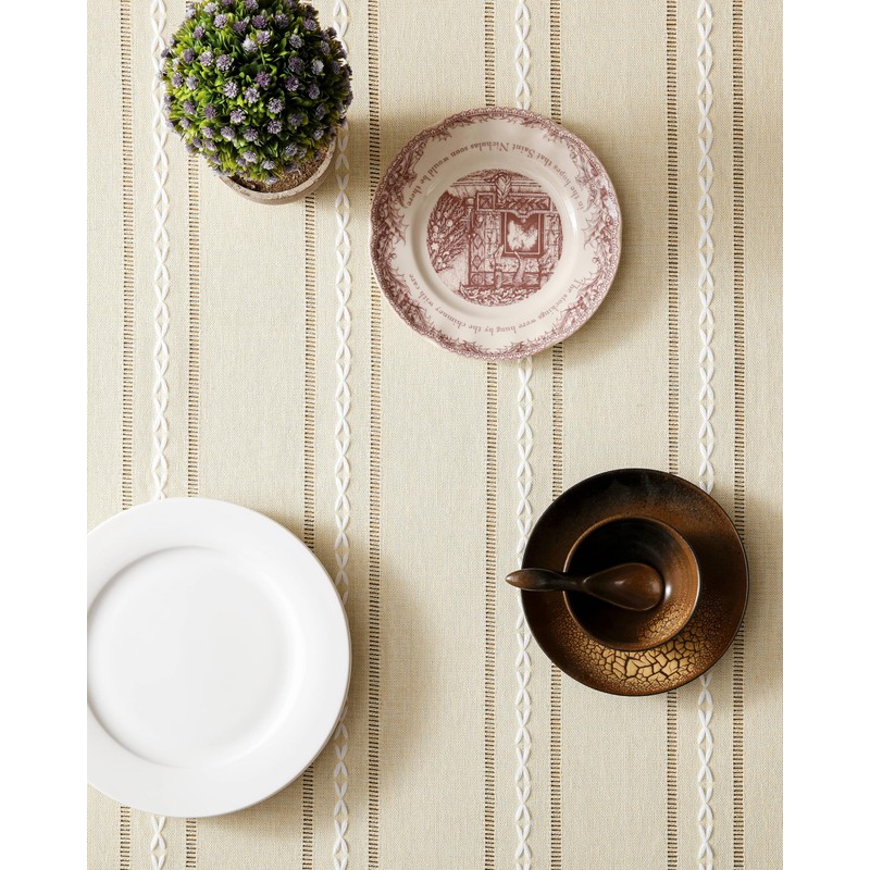 - This tablecloth features a unique combination of bohemian and farmhouse style, with chic embroidered stripes and burlap linen appearance, adds a touch of luxury to your home and creates a beautiful aesthetic.