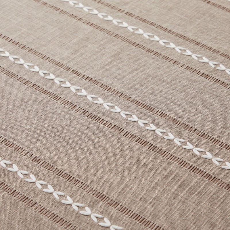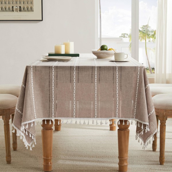 ZeeMart Hemstitched Embroidery Striped Boho Tablecloth 54x54 Inch Taupe, Heavy Weight Farmhouse Burlap Linen Light Brown Tablecloth, Wrinkle Resistant Washable Table Cloth for Square Table