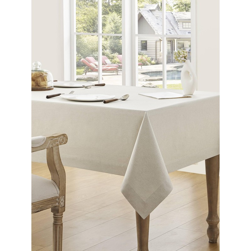 ZeeMart Light Beige Tablecloth, Farmhouse Linen Style Table Cloth Square Table Cloths 52 x 52 Inch Raw Linen, Wrinkle Resistant Washable Heavy Weight Tight Weave TableCloths