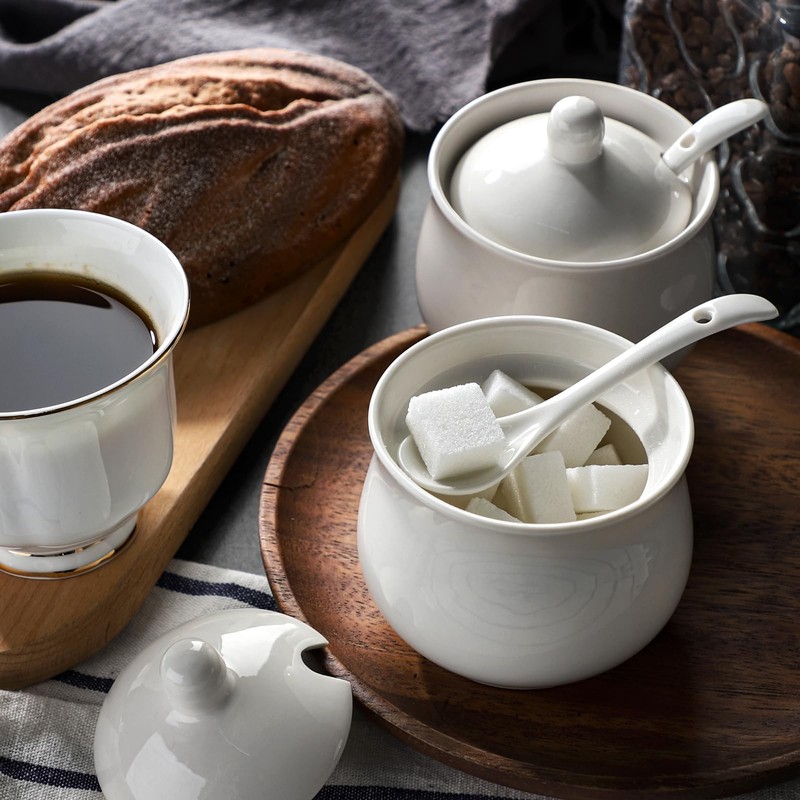 - With timeless style and practical functionality, this white sugar bowl set would be a nice choice for your family or friends