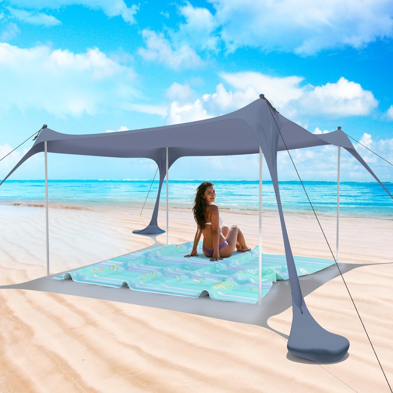 Adjustable: Spacious compact canopy sand tarp, can easily adjust to sun and wind conditions.