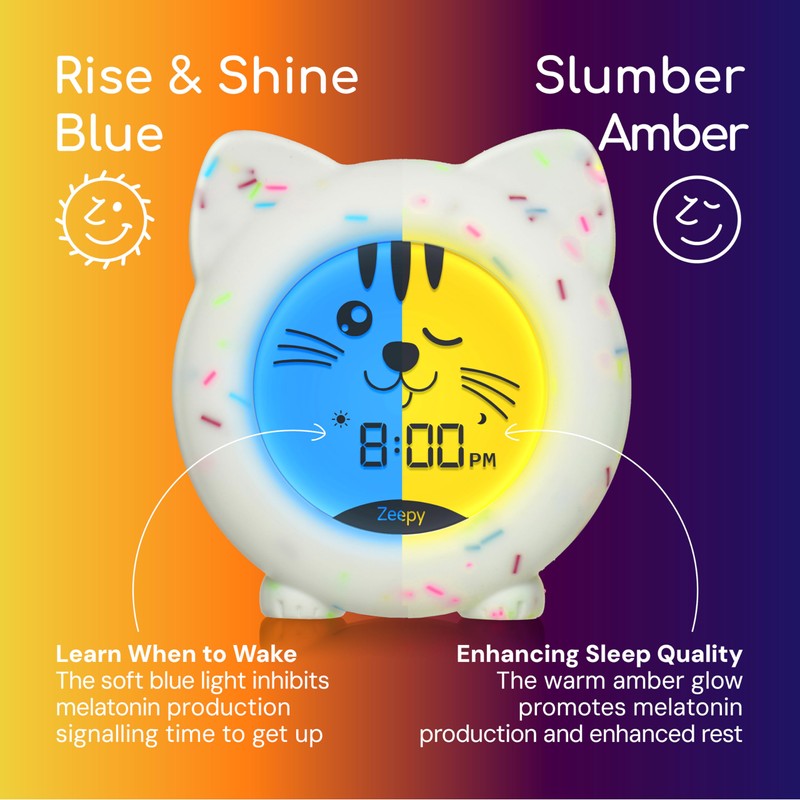 Zeepy Toddler Sleep Trainer Clock | USB Rechargeable Cute Kids Alarm Clock | Drop Proof Baby Night Light | Science-Backed Lighting for Peaceful Sleep and Ready to Wake Mornings - Kip the Kitty