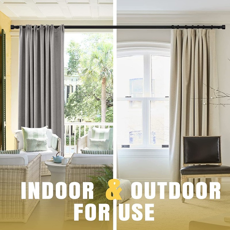 - ADJUSTABLE & VARIOUS SIZES: Up to 120 inches (10 ft) long. You can adjust the length by One Telescopic Pipe to fit different size windows. We offer a choice of eight sizes from short to extra-long curtain rods. Because of wide range of sizes, you can decorate these adjustable curtain rods indoors, such as living room, bedroom, kitchen, study, or install them outdoors, such as terrace, patio, pergola...