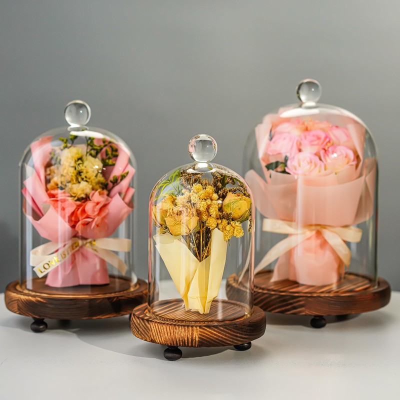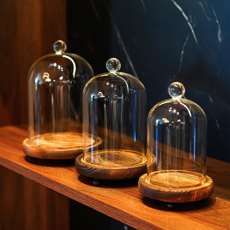 - Hand Blown Glass Dustproof Dome:You can display artificial plants, model figurines,collectibles,keepsakes,jewelry, necklaces,string lights,pocket watches,ceramic orchids,etc.