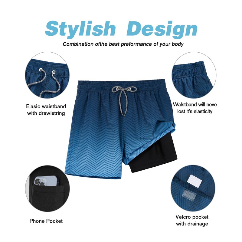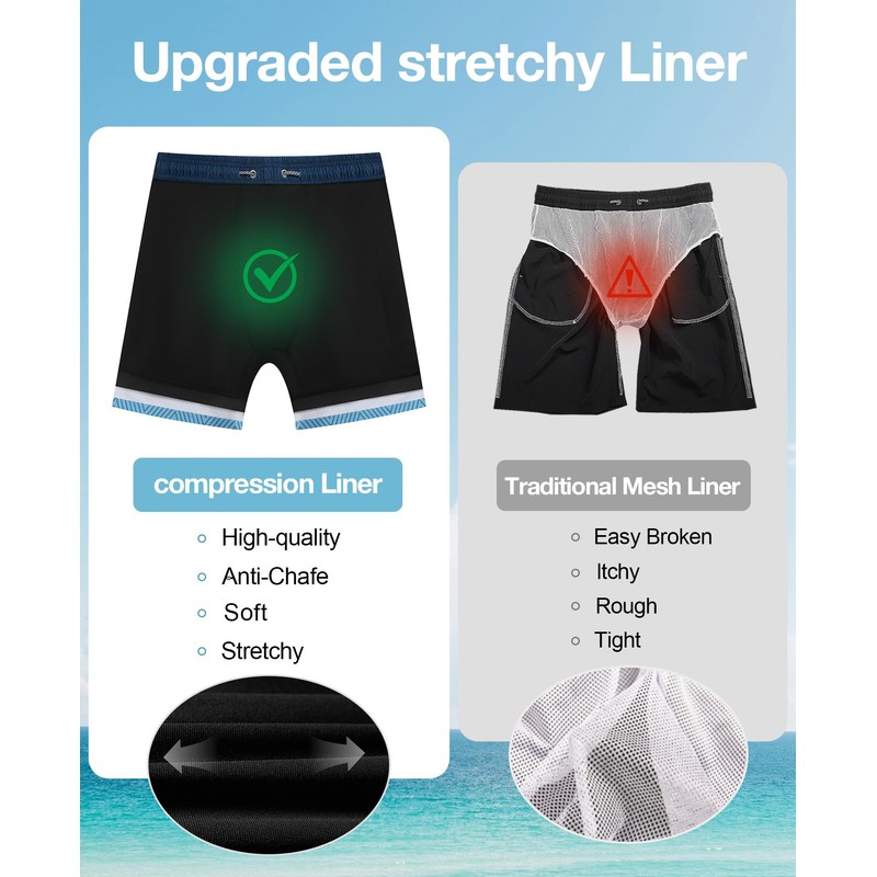 - All-Day Comfort with 2-in-1 Liner:Say goodbye to chafing and discomfort! The swim shorts feature a soft compression liner that provides extra coverage and a secure fit. Unlike traditional mesh liners, this smooth fabric keeps you comfortable all day