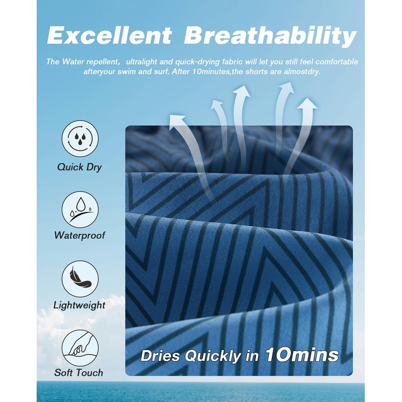 - QUICK DRY & STRETCH:Built for movement, these lightweight, 4-way stretch mens bathing suit let you move freely while staying dry. The quick-dry fabric keeps you feeling fresh and comfortable, making them perfect for days at the beach or laid-back summer outings