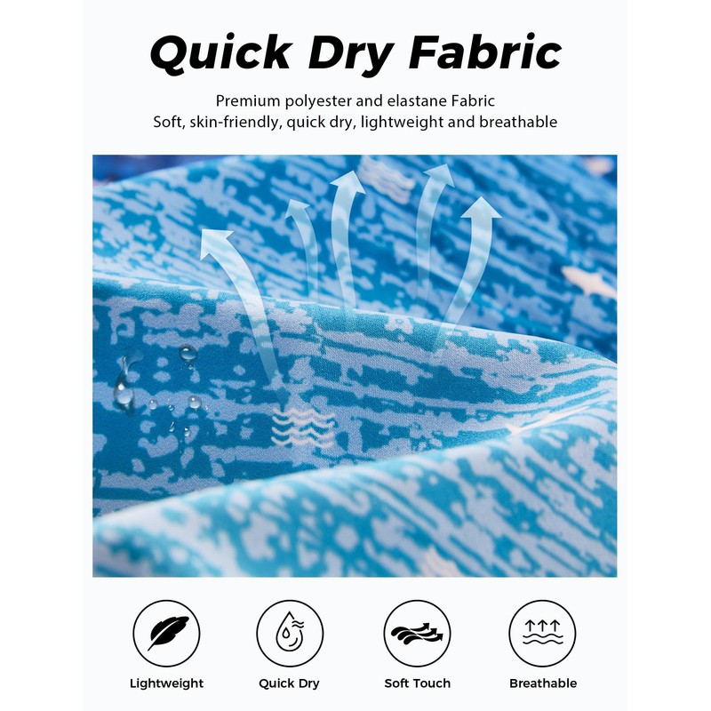 • Our mens swim trunks made of quality material, outer shorts fabric is 4-way stretch fabric, compression liner shorts fabric is 92%Polyester+8%Elastane. All get great quick dry function, normally take 5 To 10 minutes, Swim Trunks will dry already. The spandex content of the , compression lining is higher, so the elasticity is better, offer a lightweight, breathable, UPF 50+ and soft touch which more comfortable and move-freely.