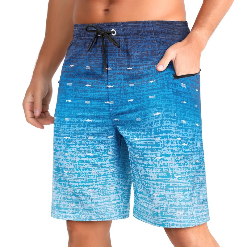 zeetoo Mens Swim Trunks with Compression Liner 9" Inseam Quick Dry Swim Shorts with Zipper Pockets Bathing Suit Gradient-Fish-Blue M
