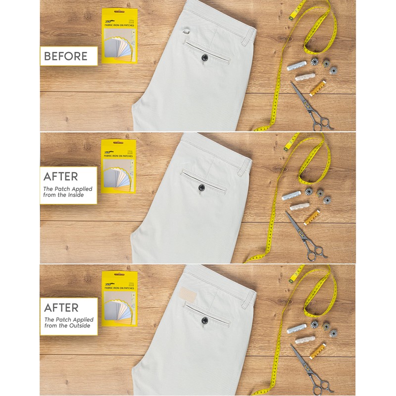 - 𝗢𝘂𝘁𝘀𝗶𝗱𝗲 & 𝗜𝗻𝘀𝗶𝗱𝗲 𝗦𝘂𝗶𝘁𝗮𝗯𝗶𝗹𝗶𝘁𝘆: You can place the patches on the outside of a garment. Use scissors or die-cut machine to cut the patches to the size or shape you want; package includes several templates to help you decorate your favorite clothes. You can also apply patches from the inside of a garment, this way the shiny rear side of the patch shows through the hole. After a couple of washes, the shiny glue will disappear and it will look like normal fabric.