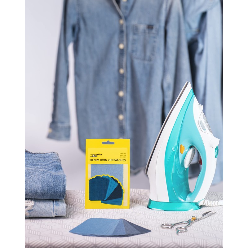 - 𝗣𝗮𝗰𝗸𝗮𝗴𝗲 𝗜𝗻𝗰𝗹𝘂𝗱𝗲𝘀: 12 iron-on denim patches, size 3" by 4-1/4" (7.5 cm x 10.5 cm). Ideal size will help to conceal the shortcomings of both small and large holes and enough to create your own design. Four different shades of blue will perfectly match your different denim clothes. Front side of the patches is 100% cotton, rear side is covered with the strongest hot-melt adhesive film. Patches made in EU using high quality materials.