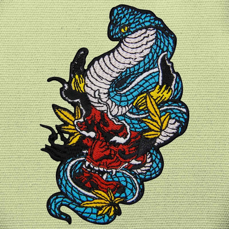 Zegin The King Cobra Hannya Oni Mask Patch Embroidered Applique Badge Iron On Sew On Emblem