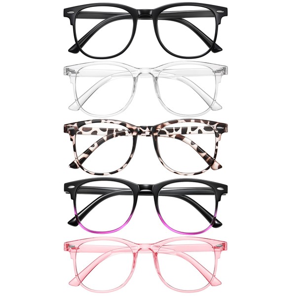 ZEHEXA Reading Glasses for Women Men Lightweight Blue Light Blocking Readers Fashion Computer Eye Glasses Frames - 5 Pack Anti Glare UV Cheaters 2.25