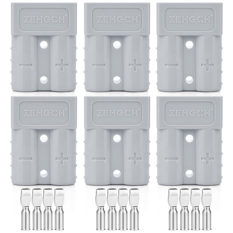 ZEHGCH 50Amp 6-10 Gauge Battery Cable Quick Connect/Disconnect Connector Plug Kit for Car Forklift Motor Winch Trailer (6AWG6PCS Grey)