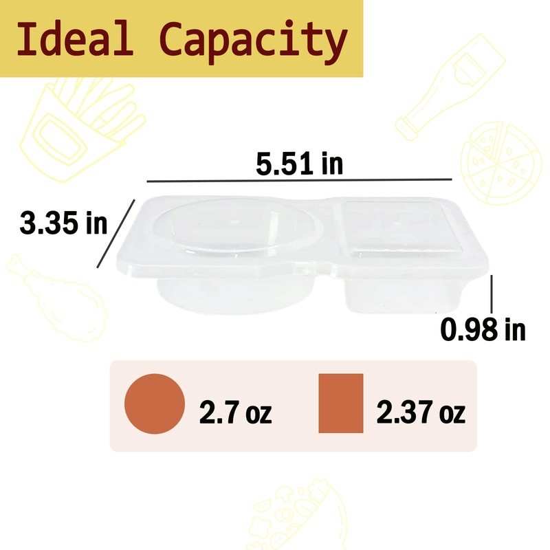 • Food-Grade Safety: made from BPA-Free plastic for safe storage, the capacity of the two compartments is 2.4oz and 2.7oz (Notice: containers are NOT dishwasher-safe)