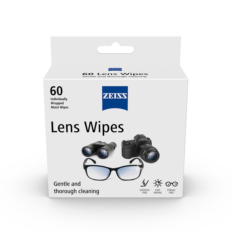 ZEISS Lens Cleaning Wipes, Pre-Moistened, Individually Wrapped Wipes for Coated Glass on Binoculars, Glasses, Sunglasses, Camera Lenses, and Scopes, 60 Count