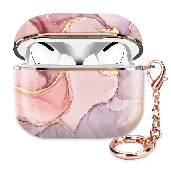 ZEKICE Compatible with AirPod Pro 2nd/1st Generation Case Cover Protective Shockproof Hard Cover Shell with Rose Gold Keychain, Case for Girl Women Men (Marble Pretty Pink)