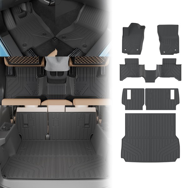 Zekzoop Floor Mats Compatible with 2024 2025 Toyota Land Cruiser Lexus GX550 Overtrail 5 Seats Trunk Mat Cargo Liner TPE Back Seat Cover Protector for Land Cruiser Accessories (Floor Mats Set of 6PCS)