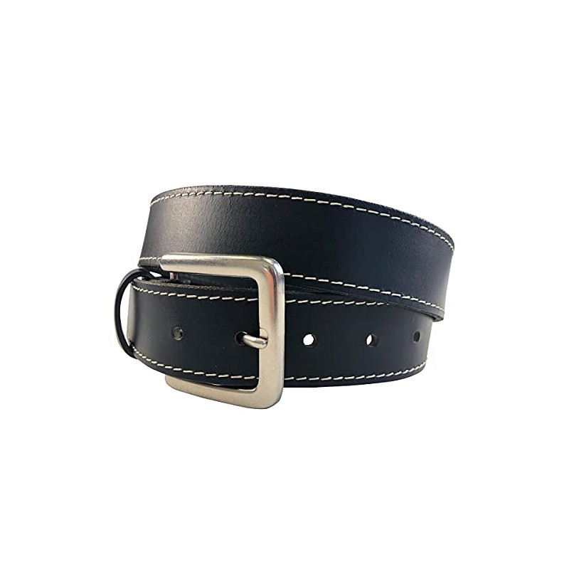 Zelikovitz 1.5"(38mm) Men's Black Solid Buffalo Leather Stitched Belt Handmade in Canada (42 for 40" Waist)