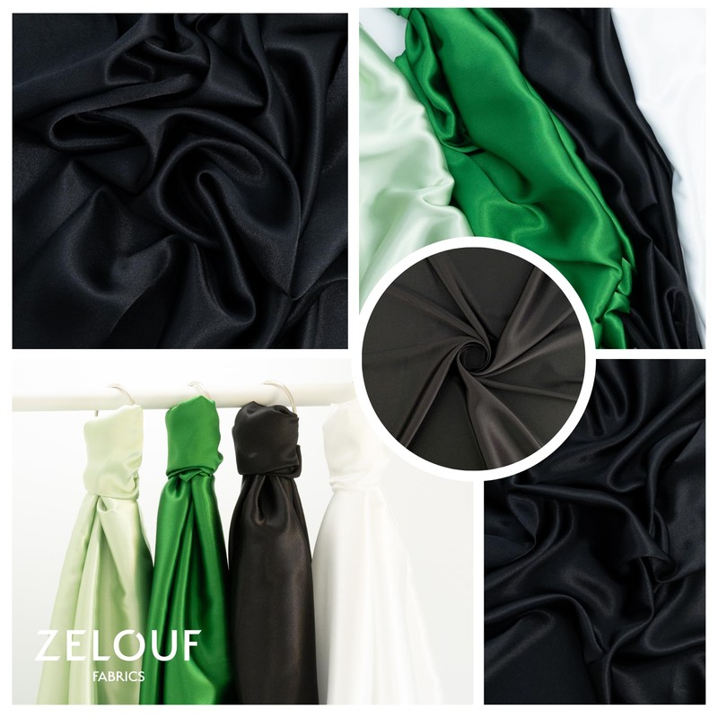 Zelouf Fabrics Charmeuse Black Satin Fabric by The Yard - Soft, Shiny, and Smooth Material for Bridal, Costumes, Crafts, Gowns, Decor, DIY Projects, Seamless and Smooth - 1 Yard, Black