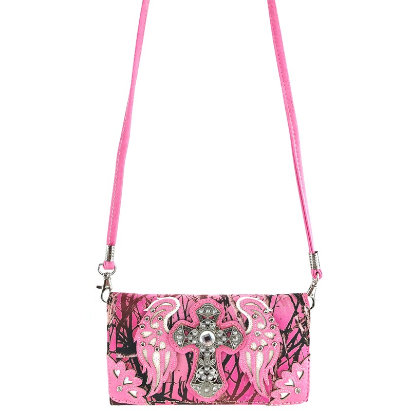 Zelris Camouflage Shine Glow Cross Wings Women Conceal Carry Handbag with Wallet (Rose)