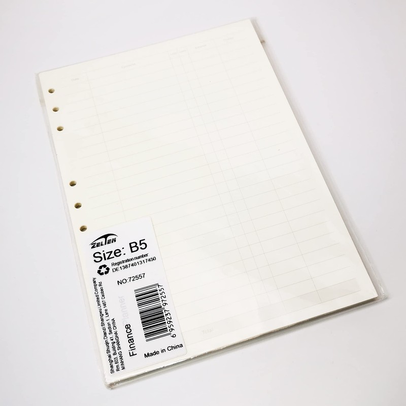 Zelten 1 Pack B5 45 Sheets/90 Pages Finance Loose Leaf Punched Paper Refills Paper for 9 Hole Binder Personal Organizer Diary Notebook Refillable Planner